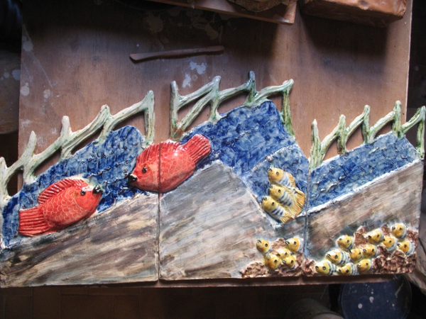 "Ma vie, ma passion, mon travail sont un tout. Je ne fais pas de différences entre chaque, que je sois à l'atelier, au jardin ou à la cuisine" Maryline est née en 1961, à Rouillac, dans la campagne Bretonne . Si rien ne la prédestinait à la céramique, sa rencontre avec Jean-René Marrec a été décisive. Ce céramiste avec qui elle a fondé une famille, lui a également transmis sa passion. Ses enfants grandissants, la céramique occupe de plus en plus de place dans sa vie. C'est donc en autodidacte, avec l'aide de son mari et la rencontre de professionnels, qu'elle a trouvé et mis au point sa propre création. Au fur et à mesure du temps, Maryline a développé et créé un monde animalier imaginaire et coloré exprimant sa joie de vivre et de décontraction dans un souci de partage de sincérité et de sensibilité . Chaque pièce, trés expressive, est unique et modelée à la main, décorée, biscuitée et émaillée .